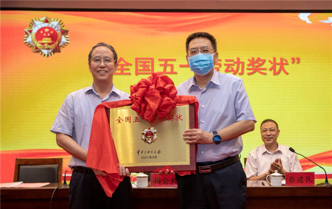 授牌儀式上,喬建民宣讀了中華全國總工會(huì)《關(guān)于表彰2021年全國五一勞動(dòng)獎(jiǎng)和全國工人先鋒號(hào)的決定》;楊會(huì)卿為學(xué)校頒發(fā)“全國五一勞動(dòng)獎(jiǎng)狀”,并代表省總工會(huì)向?qū)W校表示熱烈祝賀,向?qū)W校全體教職工致以教師節(jié)問候和美好祝福,向一直以來關(guān)心支持工會(huì)工作的學(xué)校領(lǐng)導(dǎo)和廣大教職工以及多年來為工會(huì)工作作出貢獻(xiàn)的廣大工會(huì)干部表示衷心的感謝。