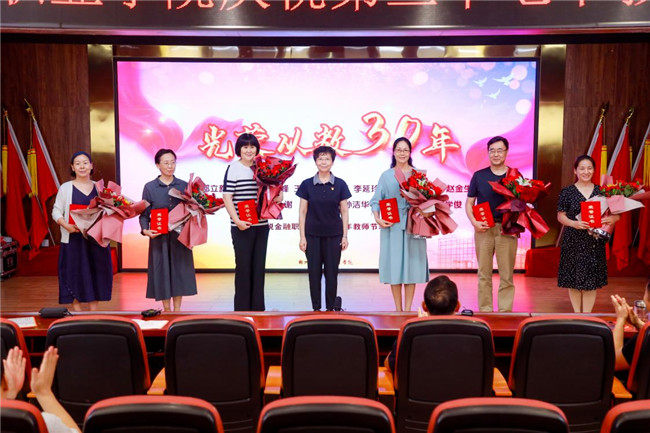 大會隆重表彰了“優(yōu)秀輔導員”、“最受學生歡迎的十佳教師”、“鄭州市優(yōu)秀教師”、“鄭州市優(yōu)秀教育工作者”、“鄭州市教育局優(yōu)秀教師”、“鄭州市五一勞動獎章”的先進個人和部分國賽、省賽獲獎教師團隊。該院黨委書記王霄鸝書記為獲得“光榮從教30年”殊榮的老教師頒發(fā)了榮譽證書。