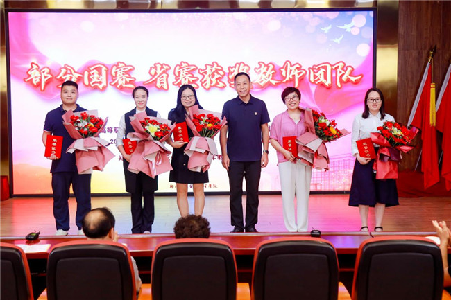 黨委副書記來棟梁為2021年部分國賽、省賽獲獎教師團隊頒獎