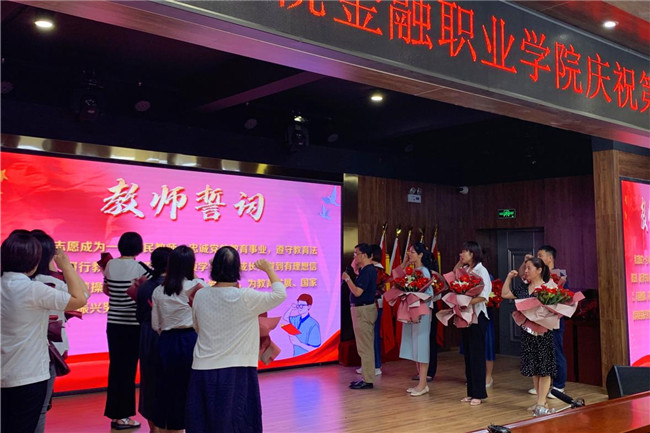 會上,該院新進教授、博士等教職工以短片《我們相聚在鄭財院》的形式與大家見面問好。圍繞學院“三次跨越”,教師代表獻上了詩朗誦《我和鄭財院》、歌曲《中國教師》。青年教師張薩作為教師代表分享了從教以來的體會和收獲,老教師代表趙金生帶領(lǐng)廣大教師重溫了教師誓詞。