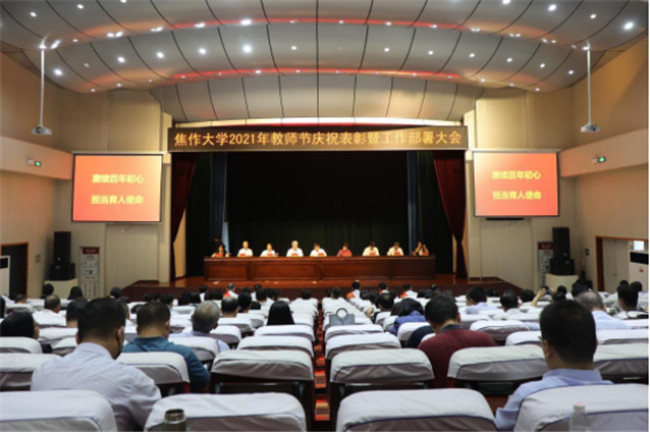 中新河南網(wǎng)9月16日電(魏豪)9月10日下午,為慶祝第37個(gè)教師節(jié),學(xué)校在南校區(qū)報(bào)告廳召開2021年教師節(jié)慶祝表彰暨工作部署大會(huì)。全體校領(lǐng)導(dǎo)、學(xué)校正科級(jí)(含)以上干部、先進(jìn)集體、教學(xué)名師、先進(jìn)標(biāo)兵、優(yōu)秀教師和優(yōu)秀教育工作者代表參加會(huì)議。會(huì)議由黨委副書記、工會(huì)主席符德學(xué)主持。