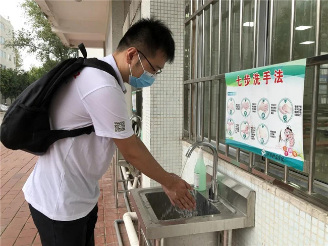 學(xué)校提前對(duì)教室進(jìn)行打掃、通風(fēng)及消殺工作。學(xué)生在教學(xué)樓前間隔1米進(jìn)行排隊(duì),檢查無(wú)異議之后,學(xué)生經(jīng)過(guò)消毒進(jìn)入教學(xué)樓。