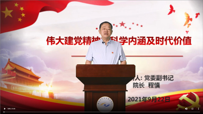 課程伊始,程院長(zhǎng)告訴同學(xué)們一百年前,中國(guó)共產(chǎn)黨的先驅(qū)們創(chuàng)建了中國(guó)共產(chǎn)黨,形成了堅(jiān)持真理、堅(jiān)守理想,踐行初心、擔(dān)當(dāng)使命,不怕犧牲、英勇斗爭(zhēng),對(duì)黨忠誠(chéng)、不負(fù)人民的偉大建黨精神,這是中國(guó)共產(chǎn)黨的精神之源。隨后他從科學(xué)內(nèi)涵、時(shí)代價(jià)值兩個(gè)方面對(duì)偉大建黨精神進(jìn)行了具體解讀。