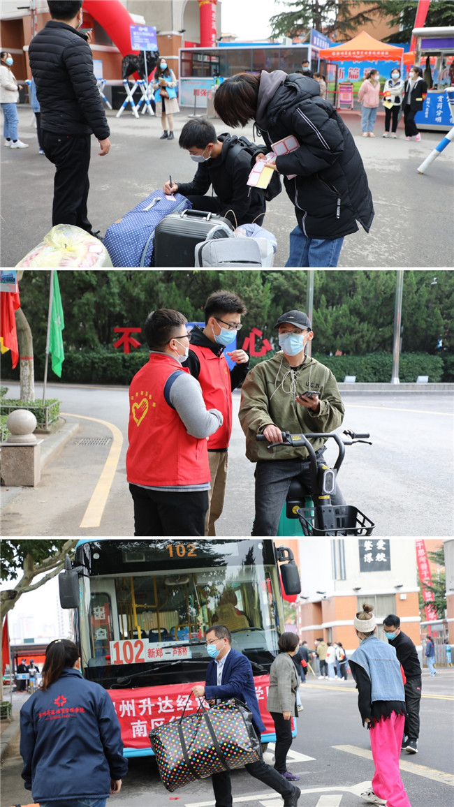 按照疫情防控的要求,送新生的家長(zhǎng)們不能進(jìn)入學(xué)校。為了解決同學(xué)們運(yùn)送行李的需要和打消家長(zhǎng)們的顧慮,學(xué)校提前協(xié)調(diào)了專(zhuān)門(mén)車(chē)輛并在全校范圍內(nèi)招募了師生志愿者幫助學(xué)生搬運(yùn)行李。據(jù)悉,教師志愿者近50人,分為3個(gè)負(fù)責(zé)區(qū)域,9個(gè)志愿小組。校園內(nèi)擺渡車(chē)、大巴車(chē)不斷往返于報(bào)到處與宿舍之間,運(yùn)送新生及其行李,為學(xué)生入校提供熱情周到的服務(wù)。為保障秋季學(xué)期學(xué)生入學(xué)平安,學(xué)校嚴(yán)格按照省教育廳和屬地教育系統(tǒng)疫情防控指導(dǎo)標(biāo)準(zhǔn),科學(xué)制定秋季學(xué)期學(xué)生返校4開(kāi)學(xué)工作方案,各相關(guān)職能部門(mén)、各學(xué)院也按照學(xué)校疫情防控工作指揮部的安排部署,做好相關(guān)準(zhǔn)備工作。
