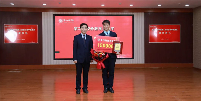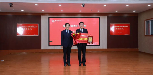 陳向煒與校長(zhǎng)教學(xué)質(zhì)量獎(jiǎng)獲得者鄒琨頒獎(jiǎng)合影