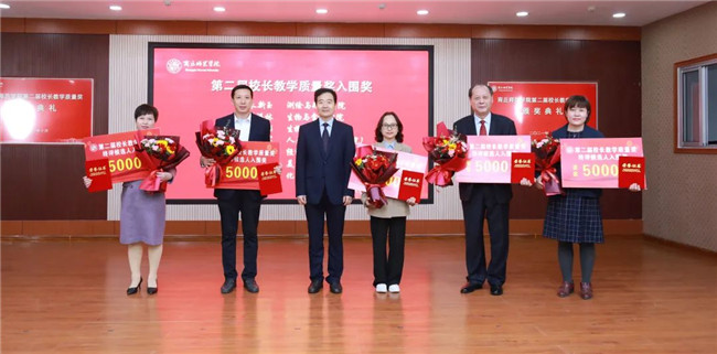 2021年的第二屆校長(zhǎng)教學(xué)質(zhì)量獎(jiǎng),在總結(jié)首屆經(jīng)驗(yàn)的基礎(chǔ)上,創(chuàng)新評(píng)審方法、嚴(yán)格評(píng)選標(biāo)準(zhǔn)、規(guī)范工作程序。歷經(jīng)單位推薦、資格審查、學(xué)校初評(píng)、學(xué)校終評(píng)、審批公示等5大環(huán)節(jié),耗時(shí)4個(gè)多月。最終,荊天、楊靜兩位教師成績(jī)優(yōu)異,再次入選“校長(zhǎng)教學(xué)質(zhì)量獎(jiǎng)”,從而榮獲“校長(zhǎng)教學(xué)杰出貢獻(xiàn)獎(jiǎng)”,每人榮獲獎(jiǎng)金6萬(wàn)元。劉培培、李靜、鄒琨、孟喜華等4位教師獲得“第二屆校長(zhǎng)教學(xué)質(zhì)量獎(jiǎng)”,每人榮獲獎(jiǎng)金5萬(wàn)元。