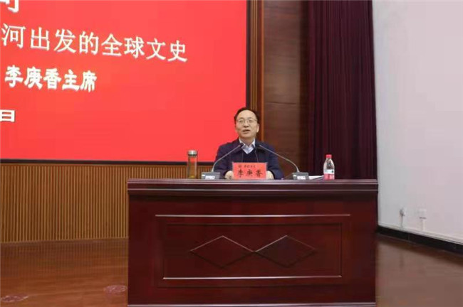 李庚香以《大哉黃河一一部從黃河出發(fā)的全球文明史》為題,圍繞中原學(xué)與黃河學(xué)的關(guān)系、黃河文化研究應(yīng)該聚焦的五大內(nèi)容、黃河學(xué)的未來三個(gè)方面,詳細(xì)介紹了黃河文明在中華文明中的重要地位,深刻闡釋了傳承弘揚(yáng)黃河文化意義,強(qiáng)調(diào)了新時(shí)代背景下,我們的使命就是要建設(shè)文明黃河軸心區(qū),書寫一部從黃河出發(fā)的全球史,再塑黃河文化引領(lǐng)力,延續(xù)歷史文脈,堅(jiān)定文化自信,彰顯中華民族本色,增強(qiáng)中華民族的底氣,增進(jìn)中華民族建構(gòu)人類命運(yùn)共同體的勇氣,契合新時(shí)代高質(zhì)量發(fā)展的內(nèi)在要求,為最終實(shí)現(xiàn)中華民族偉大復(fù)興的中國夢凝聚精神力量。
