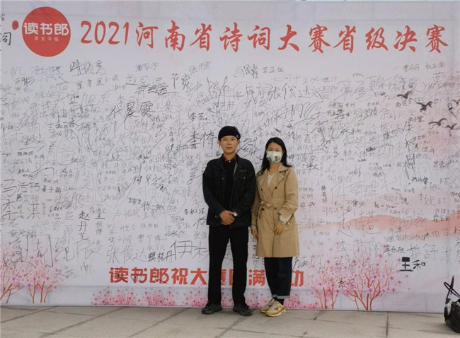 鄭州升達(dá)經(jīng)貿(mào)管理學(xué)院文法學(xué)院19級漢語言文學(xué)本科一班學(xué)生杜亞偉代表學(xué)校參加本屆詩詞大賽,10月18日,校語委辦公室曹丹丹老師帶隊參加了本次詩詞大賽決賽。本屆大賽共分四個組別:小學(xué)組、中學(xué)組、大學(xué)組和社會組。各組別將進(jìn)行四個環(huán)節(jié)比賽,即“大浪淘沙”“月宮折桂”“飛花令”和“詩畫中原”。學(xué)生杜亞偉在比賽中沉著冷靜,積極應(yīng)答,充分彰顯升達(dá)學(xué)子風(fēng)姿,取得了省級三等獎的好成績。