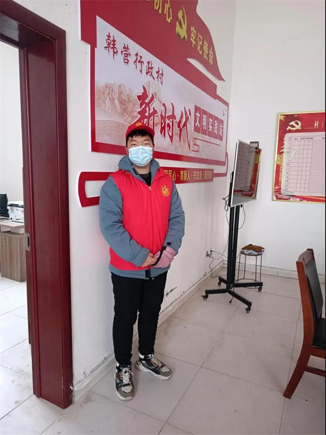 他參加了韓營行政村大學(xué)生返鄉(xiāng)的志愿活動(dòng)。在此次活動(dòng)中,崔帥威參加房屋排查,疫情站崗和統(tǒng)計(jì)勞動(dòng)力等。和大家一起站在了疫情防控的第一線,通過此次活動(dòng),他感受到了志愿者們的團(tuán)結(jié)、勇敢,負(fù)責(zé)任的態(tài)度,他說自己的家鄉(xiāng)培育了他,他能為家鄉(xiāng)盡一點(diǎn)綿薄之力,也是他的榮幸。他相信疫情終會散去,我們的祖國會越來越好!