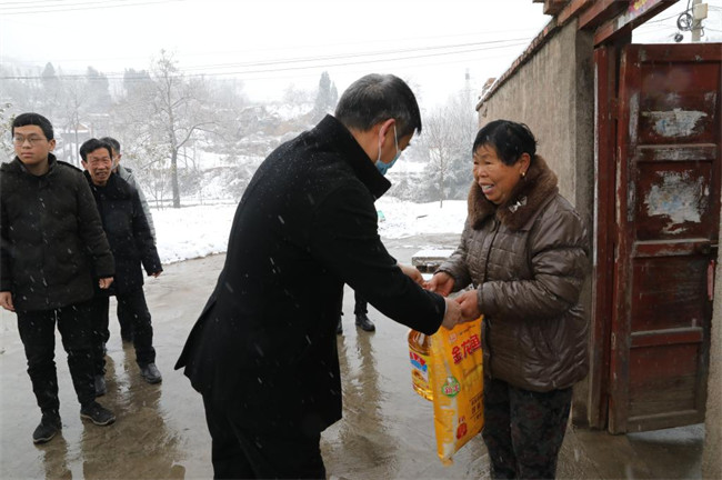 “去年收成怎么樣?”“最近身體怎么樣?”“家里還有什么困難”……迎著雪花,施院長(zhǎng)一行將米、面、油等慰問(wèn)品送到村“五保”戶、“低保”戶、大病戶和困難殘疾戶家中,并致以新春祝福和誠(chéng)摯問(wèn)候。詳細(xì)了解他們?cè)卺t(yī)療、生活等方面遇到的實(shí)際困難,并鼓勵(lì)他們要勇于面對(duì)逆境,敢于戰(zhàn)勝困難,相信在黨和政府的關(guān)懷下,生活一定會(huì)越來(lái)越美好。