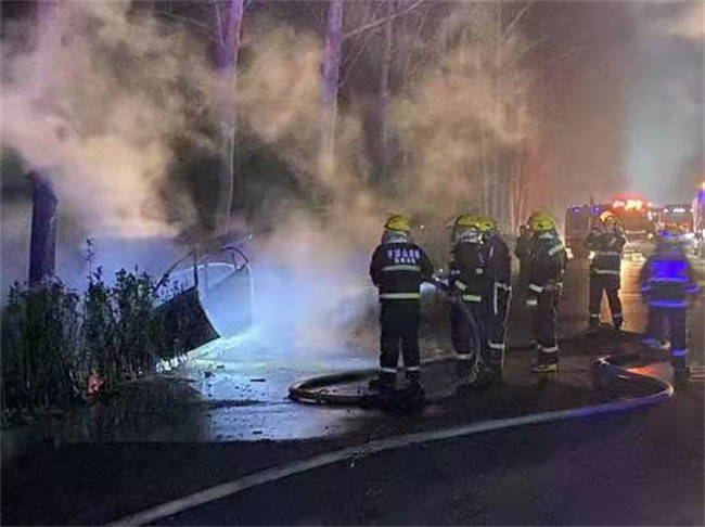 王豪東等救出司機后消防隊滅火救援