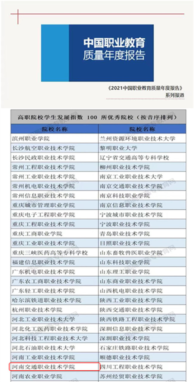 該報告由中國教育科學(xué)研究院、全國職業(yè)高等院校校長聯(lián)席會議編制,分為高等職業(yè)教育篇和中等職業(yè)教育篇,高等職業(yè)教育篇從服務(wù)貢獻、學(xué)生發(fā)展、教育教學(xué)、政府責(zé)任和國際合作五個質(zhì)量維度,向社會展示2020年中國高等職業(yè)教育的發(fā)展面貌。為了引導(dǎo)職業(yè)院校高度重視學(xué)生發(fā)展,報告首次發(fā)布全國高職院校學(xué)生發(fā)展指數(shù),從學(xué)生發(fā)展情況、教育教學(xué)情況、社會服務(wù)情況、實踐教學(xué)情況等維度構(gòu)建學(xué)生發(fā)展指數(shù),在各校提交的質(zhì)量年報數(shù)據(jù)基礎(chǔ)上,結(jié)合狀態(tài)數(shù)據(jù)平臺數(shù)據(jù),采用因子分析模型確定指標權(quán)重,遴選出100所高職院校學(xué)生發(fā)展指數(shù)優(yōu)秀院校。