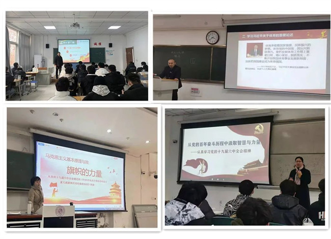 自2月21日新學(xué)期第一周上課以來(lái),馬克思主義基本原理教研室以“旗幟的力量”為主題,從《中共中央關(guān)于黨的百年奮斗重大成就和歷史經(jīng)驗(yàn)的決議》談起,融會(huì)貫通馬克思主義中國(guó)化的成果鋪展開來(lái)。毛澤東思想和中國(guó)特色社會(huì)主義理論體系概論教研室結(jié)合會(huì)議精神,突出了我們黨在百年奮斗歷程中形成的十條歷史經(jīng)驗(yàn)和民族自信,通過(guò)北京2022年冬奧會(huì)突出體育強(qiáng)國(guó)精神和文化自信。中國(guó)近現(xiàn)代史綱要教研室?guī)ьI(lǐng)學(xué)生回顧黨的百年歷程,做好回望歷史、展望未來(lái)。思想道德與法治教研室則緊密結(jié)合北京2022年冬奧會(huì)、冬殘奧會(huì)、中國(guó)女足亞洲杯奪冠等體育盛會(huì)、體育賽事,以“如何成為能夠擔(dān)當(dāng)民族復(fù)興大任的時(shí)代新人”為視角,與學(xué)生一起討論如何強(qiáng)健體魄、積極心態(tài)、健全人格、錘煉意志,進(jìn)而培養(yǎng)“擔(dān)大任”的意志品質(zhì)。形勢(shì)與政策教研室則講清楚北京冬奧會(huì)如何向世界展示了更加真實(shí)、立體、自信的中國(guó),展現(xiàn)了陽(yáng)光、富強(qiáng)、開放、充滿激情希望的國(guó)家和人民形象。