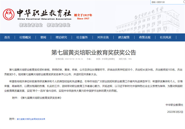 黃炎培職業(yè)教育獎(jiǎng)是由中華職業(yè)教育社創(chuàng)立,經(jīng)中共中央、國(guó)務(wù)院專項(xiàng)審核通過,是職業(yè)教育領(lǐng)域唯一保留的國(guó)家級(jí)獎(jiǎng)項(xiàng),代表了我國(guó)職業(yè)教育界的最高榮譽(yù)。該獎(jiǎng)項(xiàng)自2007年創(chuàng)設(shè)以來(lái),至今已成功舉辦七屆,評(píng)選表彰了一批在弘揚(yáng)黃炎培職教思想、推動(dòng)我國(guó)職業(yè)教育事業(yè)發(fā)展方面做出貢獻(xiàn)的優(yōu)秀單位和杰出個(gè)人,得到國(guó)內(nèi)職業(yè)教育界廣泛認(rèn)可。