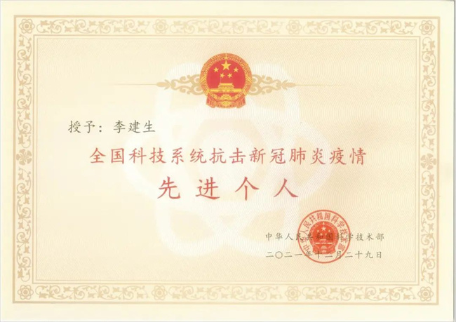 新冠肺炎疫情發(fā)生以來,以李建生教授為代表的學(xué)校廣大科技工作者迎難而上,攻堅克難,為抗擊疫情作出了突出貢獻,以實際行動詮釋了偉大抗疫精神和胸懷祖國、服務(wù)人民、勇攀高峰的科學(xué)家精神,李建生教授榮獲“全國科技系統(tǒng)抗擊新冠肺炎疫情先進個人”稱號。