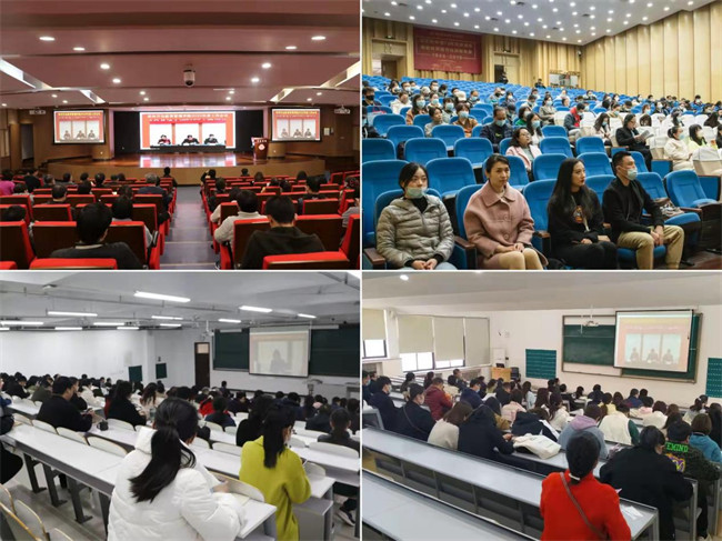 會議通過線上線下、主分會場相結(jié)合的方式召開。主會場設(shè)在國際會議廳,執(zhí)行董事王新奇,黨委書記雷霆,黨委副書記、校長郭愛先,黨委副書記、副校長兼工會主席張金安,黨委副書記、紀(jì)委書記張欣,副校長兼教務(wù)長吳益民,副校長兼總務(wù)長張其武等校領(lǐng)導(dǎo)及機關(guān)各職能部門主管(含副主管),各院部院長(主任)、副院長(副主任),學(xué)生代表在主會場參加會議。各職能部門職員、全體教職員工在雙創(chuàng)大講堂等15個分會場參加會議。會議由黨委書記雷霆主持。