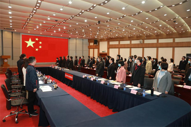 大會在莊嚴(yán)的國歌聲中拉開序幕。