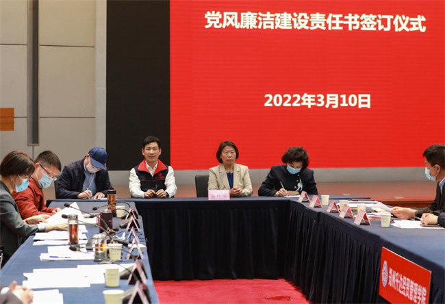 校領(lǐng)導(dǎo)雷霆、郭愛(ài)先和張金安分別與班子成員代表、行政部門(mén)負(fù)責(zé)人代表、教學(xué)單位黨政負(fù)責(zé)人代表簽訂了《黨風(fēng)廉政建設(shè)責(zé)任書(shū)》。