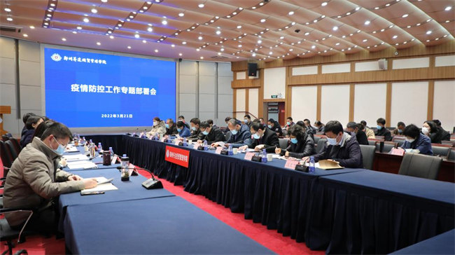 會上,疫情防控指揮部副指揮長、校黨委副書記、副校長、工會主席張金安就認(rèn)真貫徹落實(shí)黨中央、國務(wù)院、省市各級疫情防控會議精神,從八個方面對學(xué)校疫情防控工作進(jìn)行了具體安排部署:一是要召開兩個專題會議。二是要嚴(yán)把學(xué)校大門關(guān)。要按照“五個一律”的要求做好門衛(wèi)管理,非本校人員一律不準(zhǔn)入校。嚴(yán)格執(zhí)行入校身份核驗(yàn)、刷兩碼、測體溫、信息登記、查驗(yàn)48小時內(nèi)核酸檢驗(yàn)證明等措施。嚴(yán)格落實(shí)快遞、物流等消毒消殺,引導(dǎo)廣大師生暫停網(wǎng)絡(luò)購物、訂購?fù)赓u等行為。三是要加強(qiáng)學(xué)生管理。原則上學(xué)生不允許請假外出,如因身體原因或特殊情況需要出校,要嚴(yán)格履行審批手續(xù),嚴(yán)禁翻越圍墻出入。四是要加強(qiáng)教職工管理。教職工原則上不允許離開校園和鄭州,不乘坐公共交通,實(shí)行“兩點(diǎn)一線”閉環(huán)管理,跨市流動需請假報批。本人及共同居住人員有離鄭旅居史的,要主動進(jìn)行報備,做到三天兩檢。省外返鄭人員居家健康觀察一周,一周內(nèi)不聚集、不聚餐,并進(jìn)行一周三檢。五是要暫停校內(nèi)聚集性活動,暫停外出培訓(xùn)交流,杜絕聚餐、聚會等活動。六是要做好日報告、零報告制度。各單位要做好晨、午、晚檢和重點(diǎn)人群的行程軌跡及健康狀況排查,加強(qiáng)對請假、校外居住等重點(diǎn)人員管理,強(qiáng)化重點(diǎn)場所、重點(diǎn)部位的消毒消殺。七是要加強(qiáng)人文關(guān)懷。做好心理健康教育,引導(dǎo)廣大師生員工做自己健康管理的第一責(zé)任人。八是要完善組織架構(gòu)。加強(qiáng)隊(duì)伍力量,加大檢查力度,對不遵守學(xué)校防疫規(guī)定,不配合落實(shí)相關(guān)管理措施等行為加大督導(dǎo)檢查力度,對相關(guān)違規(guī)人員進(jìn)行處理。