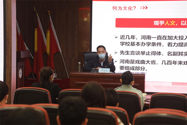 文化興則國運興,文化強則民族強。文化強國是中華民族復興的重要標準,建設社會主義文化強國,不僅需要提升公共文化服務水平,健全現(xiàn)代化文化產(chǎn)業(yè)體系,還需要提高國家文化軟實力。來棟梁結合河南節(jié)日奇妙游系列宣傳片和短視頻博主李子柒等當下熱點話題,教育引導同學們要通過自己的實際行動繼承和弘揚中華優(yōu)秀傳統(tǒng)文化,講好中國故事,傳播好中國聲音,闡釋好中國特色,做有情懷、有思想、有擔當、有學識的新時代大學生。