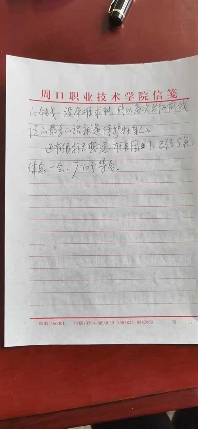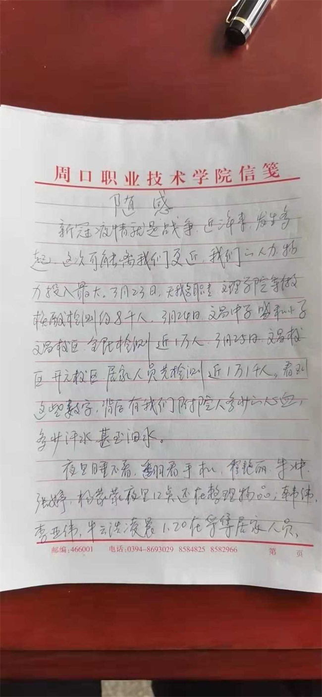 洋洋灑灑寫完上述感言后,孫先鋒拍照發(fā)到了附屬醫(yī)院職工群,想給大家一些安慰和鼓勵。沒曾想,一位職工把這封信轉(zhuǎn)發(fā)到了周口職業(yè)技術(shù)學(xué)院的全體教職工群里。
