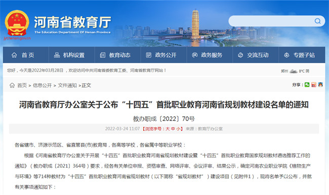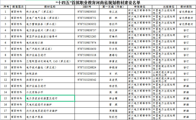 中新河南網(wǎng)3月31日電 日前,省教育廳印發(fā)《關(guān)于公布“十四五”首批職業(yè)教育河南省規(guī)劃教材建設(shè)名單的通知》(教辦職成〔2022〕70號),鄭州電力高等?茖W(xué)校18本教材成功獲批“十四五”首批職業(yè)教育省規(guī)劃教材建設(shè)項目。