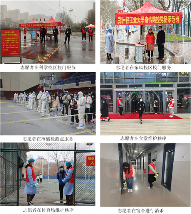 本次疫情防控志愿服務(wù)本著“個人自愿申請、黨員干部帶頭”的原則,在學(xué)校疫情防控工作領(lǐng)導(dǎo)小組安排指導(dǎo)下開展了多項(xiàng)活動,志愿者們結(jié)合自身實(shí)際,主動參與防控宣傳,線上利用學(xué)校官方媒體平臺宣傳防控知識,線下在服務(wù)過程中宣傳防控措施和防控要求,傳播疫情防控社會正能量。教職工志愿者落實(shí)服務(wù)下沉一線要求,積極參與校園管理,服務(wù)在核酸檢測點(diǎn)的教職工志愿者耐心細(xì)致,積極維護(hù)現(xiàn)場秩序,提醒檢測師生做好個人防護(hù);服務(wù)在兩校區(qū)大門的教職工志愿者嚴(yán)把校門關(guān),協(xié)助安保人員實(shí)施校園封閉式管理工作,對進(jìn)出校門的人員、車輛進(jìn)行細(xì)致查驗(yàn),守穩(wěn)學(xué)校疫情防控第一道防線。各學(xué)院積極響應(yīng),動員學(xué)生志愿者在食堂、操場、宿舍等區(qū)域服務(wù)。食堂的志愿者們積極做好洗手消毒指引、購餐引導(dǎo)、維護(hù)秩序等工作,為師生們提供良好的就餐秩序;宿舍的志愿者們協(xié)助宿管老師對宿舍走廊等公共區(qū)域進(jìn)行消殺,為同學(xué)們營造出健康舒適的住宿環(huán)境;校園巡查志愿者在校園公共區(qū)域?qū)Σ灰?guī)范行為進(jìn)行及時勸阻和引導(dǎo),提醒進(jìn)入教學(xué)樓、體育場等區(qū)域人員做好防疫措施并發(fā)放口罩。全體師生員工層層壓實(shí)校園疫情防控責(zé)任,時刻繃緊思想之弦,確保校園不留安全死角。