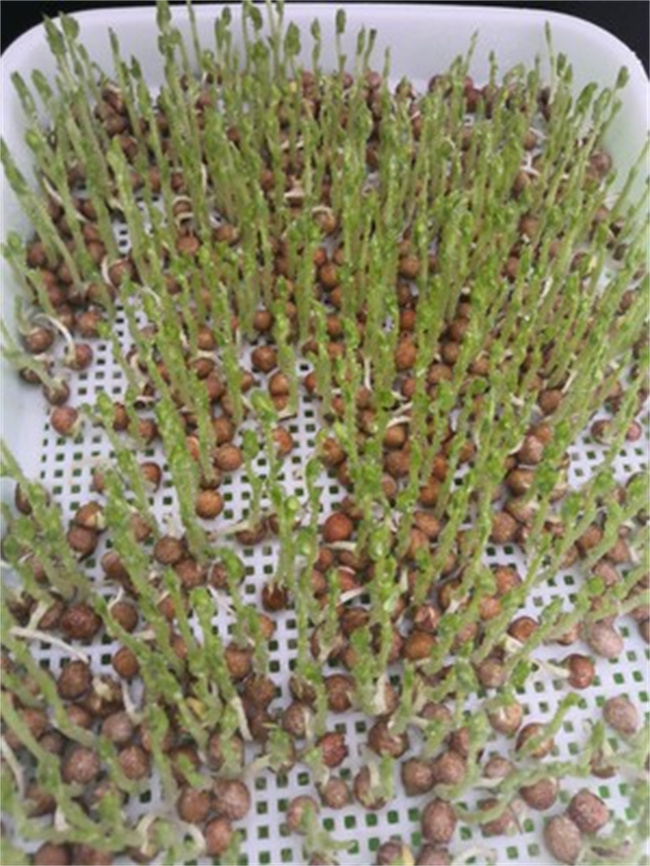 花生芽生長期間始終保持黑暗環(huán)境,一般在室溫條件下,7-8天左右可收芽苗了。