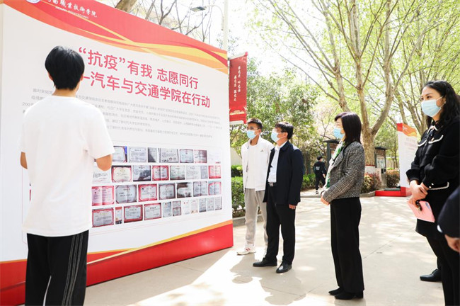 在抗洪抗疫先進(jìn)學(xué)子典型事跡展示中,集中展示了河職學(xué)子在“7·20”洪災(zāi)和疫情期間,積極投身當(dāng)?shù)乜购榭挂咧驹阜⻊?wù)活動(dòng),收到的感謝信和榮譽(yù)證書。抗洪抗疫期間,學(xué)校號(hào)召廣大學(xué)子就近加入家鄉(xiāng)抗洪抗疫志愿服務(wù)工作,先后有2000余名團(tuán)員青年響應(yīng)號(hào)召加入抗洪抗疫攻堅(jiān)戰(zhàn),累計(jì)收到感謝信900余封,涌現(xiàn)出河南省“抗擊新冠肺炎疫情青年志愿者先進(jìn)個(gè)人”、河南省“疫情防控和防汛救災(zāi)工作優(yōu)秀大學(xué)生”等一批先進(jìn)典型。