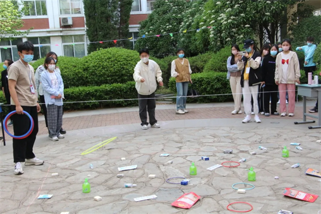 本次主題班會活動包含健身操、套圈兒、夾乒乓球、移動球筐等項目。同學(xué)們在活動中踴躍積極、團結(jié)協(xié)作,展示才華的同時又緩解了壓力。