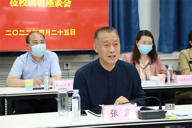 考察結(jié)束后,與會人員在課程與培訓(xùn)學(xué)院進(jìn)行了座談。學(xué)校黨委書記張震介紹了學(xué);厩闆r和特色辦學(xué)經(jīng)驗(yàn),詳細(xì)解讀了學(xué)校從“把企業(yè)引到學(xué)校”,到“把學(xué)校辦到企業(yè)”,再到“校企共建產(chǎn)業(yè)學(xué)院”,“線場模式”構(gòu)建校企命運(yùn)共同體,讓產(chǎn)教融合、校企合作落地生根的具體實(shí)踐。黨委副書記魯俊民從開展“四全一促”工作、培養(yǎng)“紅匠人才”、有效開展創(chuàng)新性黨建活動等六個方面匯報了學(xué)校打造高質(zhì)量黨建的做法和成效。學(xué)校相關(guān)部門和二級學(xué)院負(fù)責(zé)同志分別發(fā)言。