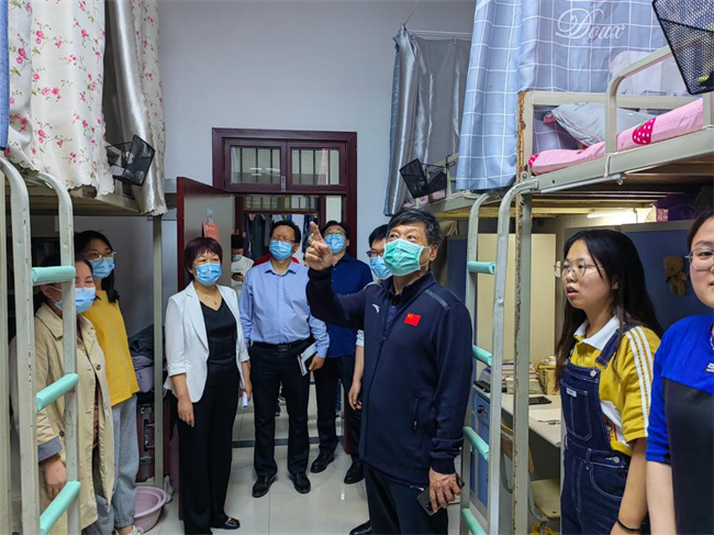 校黨委副書記、工會(huì)主席張小平關(guān)心學(xué)工人員值班住宿情況