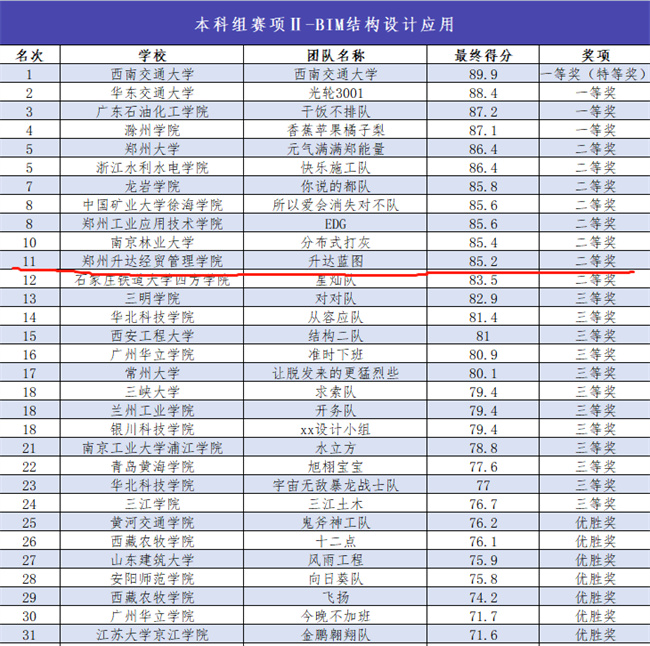 鄭州升達(dá)經(jīng)貿(mào)管理學(xué)院在全國高校BIM應(yīng)用畢業(yè)設(shè)計(jì)大賽獲二等獎(jiǎng)