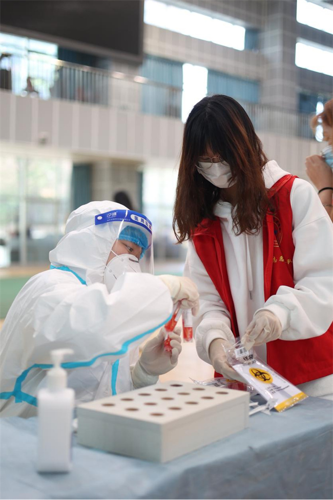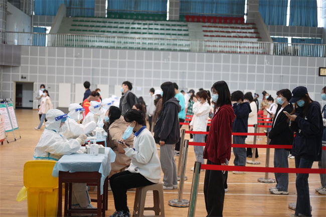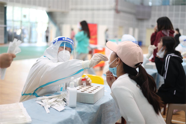 醫(yī)護(hù)人員在學(xué)院體育館為師生做核酸檢測
