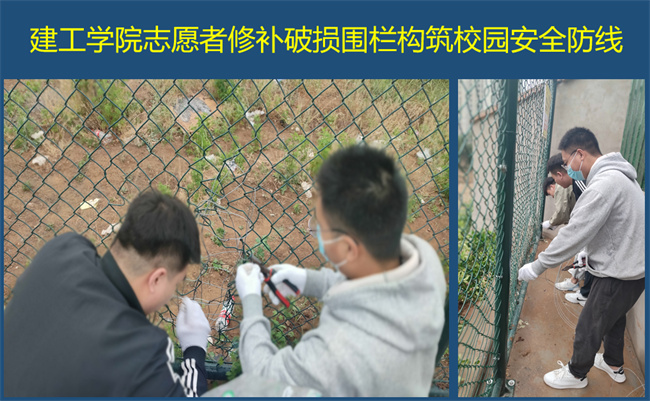 5月9日,建工學(xué)院志愿者在巡視校園時(shí)發(fā)現(xiàn)東校區(qū)圍欄個(gè)別地方有破損,立即向?qū)W院做了報(bào)告。在院長楊開云的協(xié)調(diào)下,實(shí)驗(yàn)室教師和志愿者一起將破損圍欄修補(bǔ)完好,阻斷了疫情傳播風(fēng)險(xiǎn),維護(hù)了校園安全。