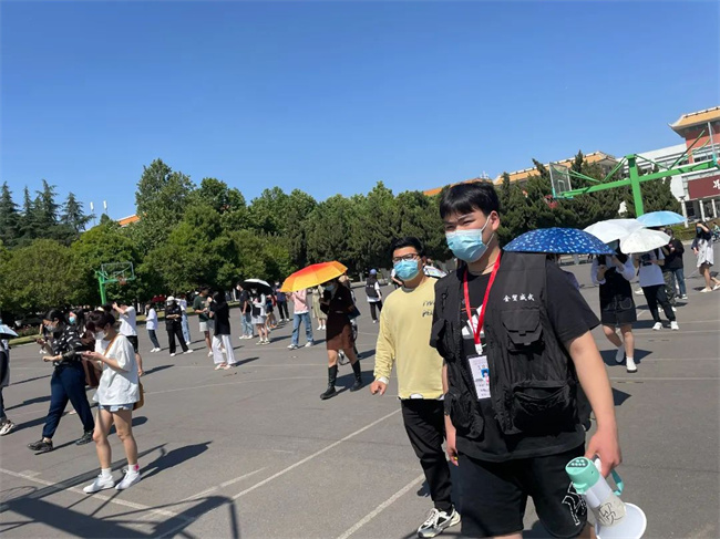 本學(xué)期,疫情防控形勢緊張,作為金貿(mào)學(xué)院學(xué)生骨干,申曉陽同學(xué)共組織出勤核酸檢測工作13次,主要負(fù)責(zé)核酸檢測時(shí)的秩序維護(hù)工作。為了保證間隔兩米,不管是烈日當(dāng)頭還是刮風(fēng)下雨,申曉陽同學(xué)總會(huì)在核酸檢測前一天到現(xiàn)場一個(gè)一個(gè)檢查地標(biāo)有無缺失,及時(shí)修補(bǔ),確保核酸檢測有序進(jìn)行。核酸檢測進(jìn)行中,申曉陽同學(xué)組織志愿者團(tuán)隊(duì),不間斷提醒同學(xué)們提前打開核酸登記碼,保持兩米間隔的距離排好隊(duì)伍;并引導(dǎo)同學(xué)們不插隊(duì)、不掉隊(duì),文明有序等待檢測。