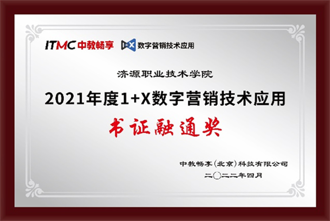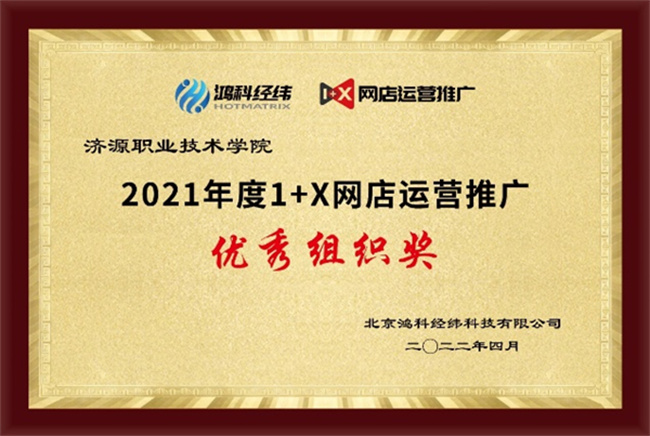 據(jù)悉,濟源職業(yè)技術(shù)學(xué)院“網(wǎng)店運營推廣”考試組織工作獲得了2021年度的1+X網(wǎng)店運營推廣職業(yè)技能等級證書(中級)全國統(tǒng)一考試“優(yōu)秀組織獎”的榮譽稱號,“數(shù)字營銷技術(shù)”考點獲得了2021年度“1+X”數(shù)字營銷技術(shù)應(yīng)用“書證融通獎”。
