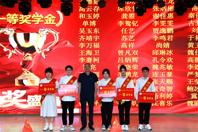 院長(zhǎng)宋宏偉為獲得國(guó)家勵(lì)志獎(jiǎng)學(xué)金的學(xué)生代表頒獎(jiǎng)