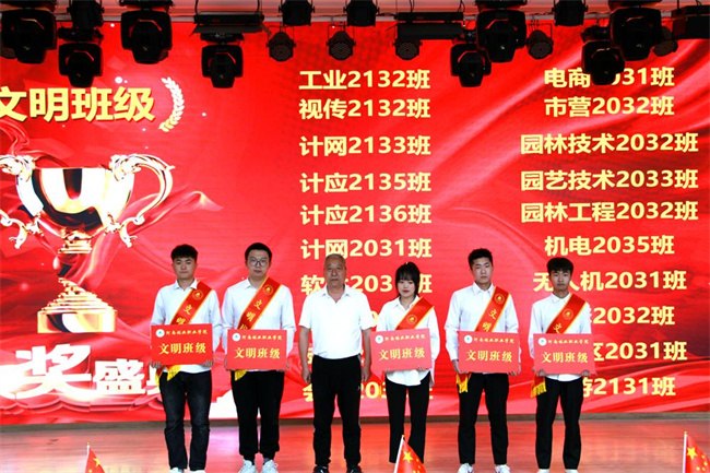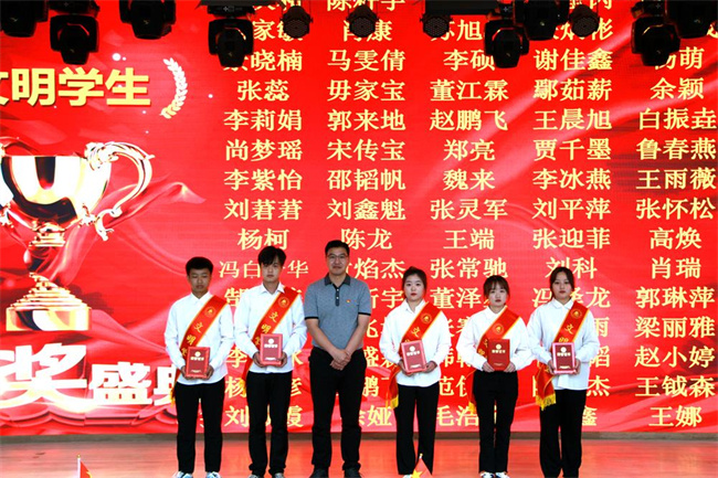 路買林副院長(zhǎng)為獲得文明班級(jí)的學(xué)生代表頒獎(jiǎng)