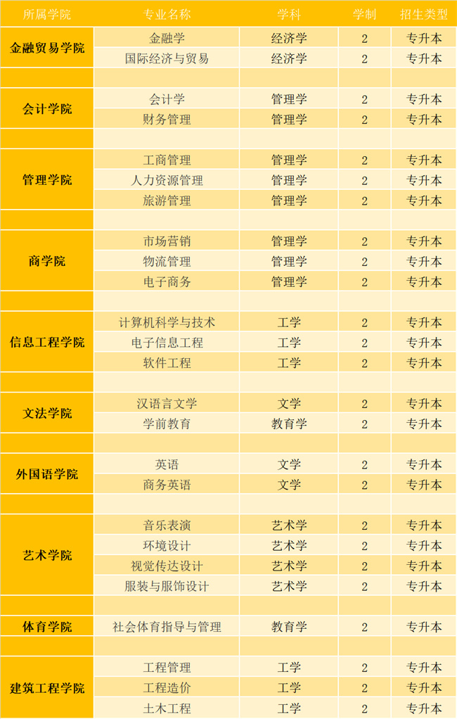 2022年專升本招生專業(yè)