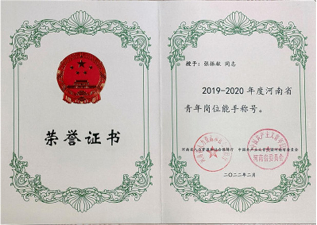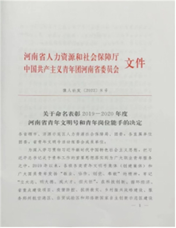 中新河南網(wǎng)6月6日電(李安杰) 近日,河南省人社廳、共青團(tuán)河南省委聯(lián)合下發(fā)《關(guān)于命名表彰2019-2020年度河南省青年文明號(hào)和青年崗位能手的決定》(豫人社發(fā)【2022】8號(hào))。鄭州電力高等專科學(xué)校電氣工程學(xué)院張振獻(xiàn)、何永濤兩位教師榮獲“河南省青年崗位能手”稱號(hào)。