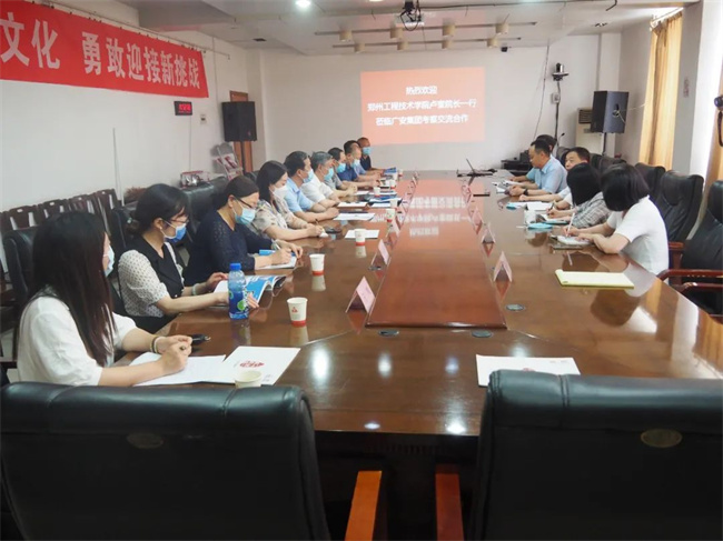 中新河南網(wǎng)6月9日電 為更好開展聯(lián)合培養(yǎng)博士后工作、深化校企合作、促進(jìn)畢業(yè)生高質(zhì)量就業(yè),6月8日下午,鄭州工程技術(shù)學(xué)院校長(zhǎng)盧奎,副校長(zhǎng)鄭高飛一行帶領(lǐng)大學(xué)生創(chuàng)新創(chuàng)業(yè)服務(wù)指導(dǎo)中心、科技處、校企合作處、化工食品學(xué)院等相關(guān)單位負(fù)責(zé)人到河南廣安生物科技股份有限公司開展走訪考察活動(dòng)。