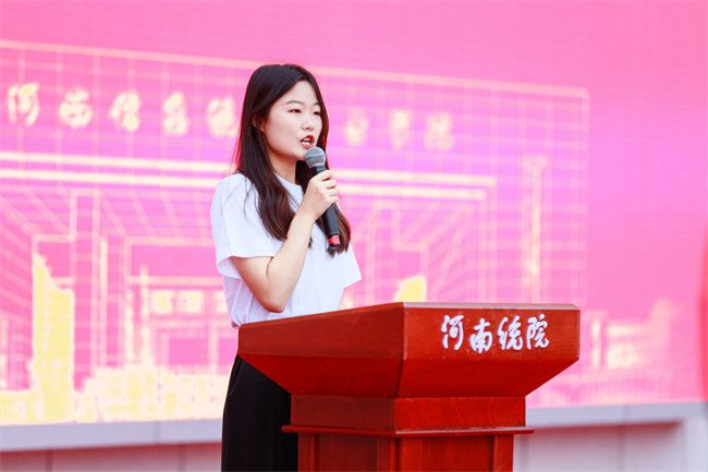 畢業(yè)生代表、學(xué)前教育系王妍妍在發(fā)言中表示,相逢總有千言,離別僅需二字,三年的時(shí)光匯成一句:“謝謝您了,我可愛的統(tǒng)院!”她回顧了三年時(shí)光里的成長(zhǎng)故事,回憶了最難忘最美好的青春足跡,深情感謝母校老師的辛勤付出。她表示,心有薔薇又何懼刀劍,勇敢去想勇敢去闖。統(tǒng)院學(xué)子將繼續(xù)秉承“明德篤志,強(qiáng)能求真”的校訓(xùn),運(yùn)用所學(xué)的知識(shí),勤于實(shí)踐,踏實(shí)做事,在不同的工作崗位上為母校爭(zhēng)光添彩,用辛勤努力來回報(bào)社會(huì),回報(bào)母校。