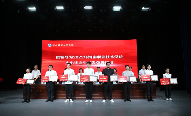 校長梅樂堂為2022屆畢業(yè)生代表頒發(fā)了畢業(yè)證書;副校長肖瓏宣讀了2022年學(xué)校杰出畢業(yè)生表彰文件后,校領(lǐng)導(dǎo)分別為杰出畢業(yè)生頒發(fā)榮譽(yù)證書。青年教師蔡晶晶代表全體教師為畢業(yè)生送上祝福,并叮囑畢業(yè)生們既要仰望星空,又要腳踏實(shí)地,做新時(shí)代有為青年;杰出畢業(yè)生蔡紀(jì)闖代表全體畢業(yè)生表達(dá)了對(duì)學(xué)校和師長的感謝,并號(hào)召同學(xué)們要將“河職精神”熔鑄于生命之中,在未來的各個(gè)領(lǐng)域拼搏奮進(jìn),發(fā)光發(fā)熱。