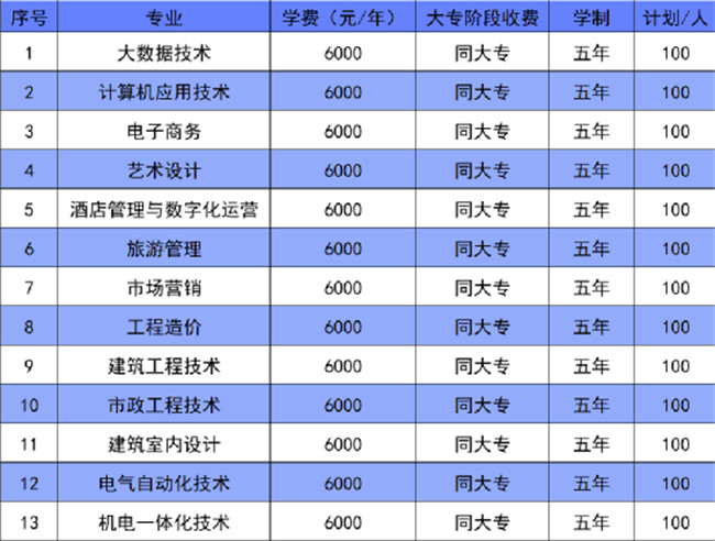 五年一貫制大專專業(yè)一覽表