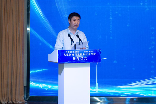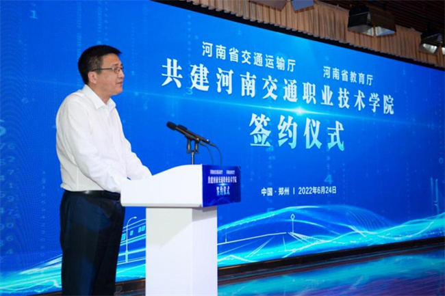 中新河南網(wǎng)6月27日電(劉月 趙學峰) 6月24日,河南省交通運輸廳、河南省教育廳共建河南交通職業(yè)技術(shù)學院簽約儀式在河南交通職業(yè)技術(shù)學院舉辦。省教育廳黨組書記、廳長宋爭輝,省交通運輸廳黨組書記、廳長徐強出席簽約儀式并講話。簽約儀式由省委教育工委專職副書記尹洪斌主持,省教育廳黨組成員、副廳長毛杰、陳垠亭,省交通運輸廳黨組成員、副廳長唐彥民、吳孔軍,省交通運輸廳黨組成員、省交通發(fā)展中心主任溫勝強出席簽約儀式。兩廳相關(guān)處室負責人,河南交通職業(yè)技術(shù)學院黨委書記曹焱、院長劉志偉和領(lǐng)導班子成員、各部門負責人參加了簽約儀式。