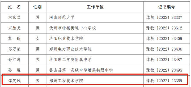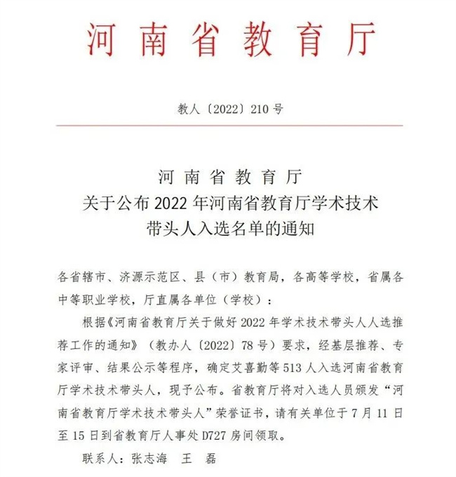 中新河南網(wǎng)7月5日電 近日,河南省教育廳發(fā)布了《關(guān)于公布2022年河南省教育廳學(xué)術(shù)技術(shù)帶頭人入選名單的通知》(教人〔2022〕210號),鄭州工程技術(shù)學(xué)院外國語學(xué)院(國際教育學(xué)院)王麗麗老師和信息工程學(xué)院朱志甫博士榮獲“2022年河南省教育廳學(xué)術(shù)技術(shù)帶頭人”稱號。