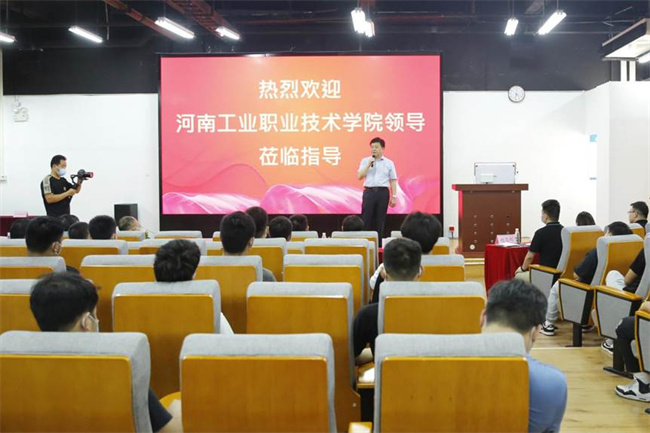 7月4日下午,溫道軍一行來到了富士康鄭州科技園,在富士康Fii-CAA人資總處副總經(jīng)理張占武的陪同下參觀了D15實訓(xùn)基地,看望了優(yōu)秀校友。在校企雙方共同努力下,產(chǎn)教融合和人才培養(yǎng)模式創(chuàng)新等取得卓著成效,未來將在原有合作基礎(chǔ)上再上新臺階,共同打造“產(chǎn)教融合”的典范。