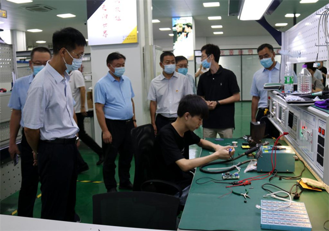 中新河南網(wǎng)8月7日電(呂品) 為學(xué)習(xí)貫徹落實(shí)全省職業(yè)教育大會(huì)精神,全面提升全市職業(yè)教育發(fā)展水平,不斷提高全市職業(yè)學(xué)校辦學(xué)質(zhì)量,市教育局研究組織全市職業(yè)院校主要領(lǐng)導(dǎo)巡回觀摩活動(dòng)。8月4日上午,市教育局副局長(zhǎng)楊文超帶領(lǐng)觀摩團(tuán)一行首站來(lái)到許昌電氣職業(yè)學(xué)院進(jìn)行觀摩交流。院長(zhǎng)楊德嶺,副院長(zhǎng)馮朝印,院辦、教務(wù)處、設(shè)備與實(shí)訓(xùn)管理中心、電氣工程系、機(jī)電工程系等部門(mén)負(fù)責(zé)人陪同觀摩活動(dòng)。