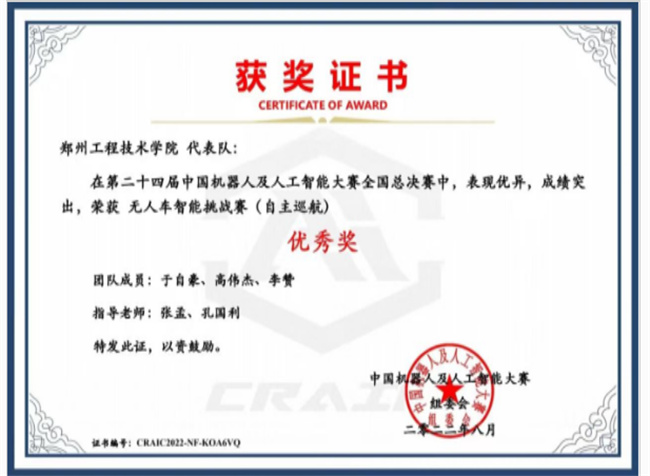 鄭州工程技術(shù)學(xué)院師生在第二十四屆中國機(jī)器人及人工智能大賽中再獲佳績